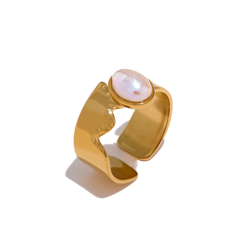 Anneau ajustable irrégulier doré avec perle simulée incrustée