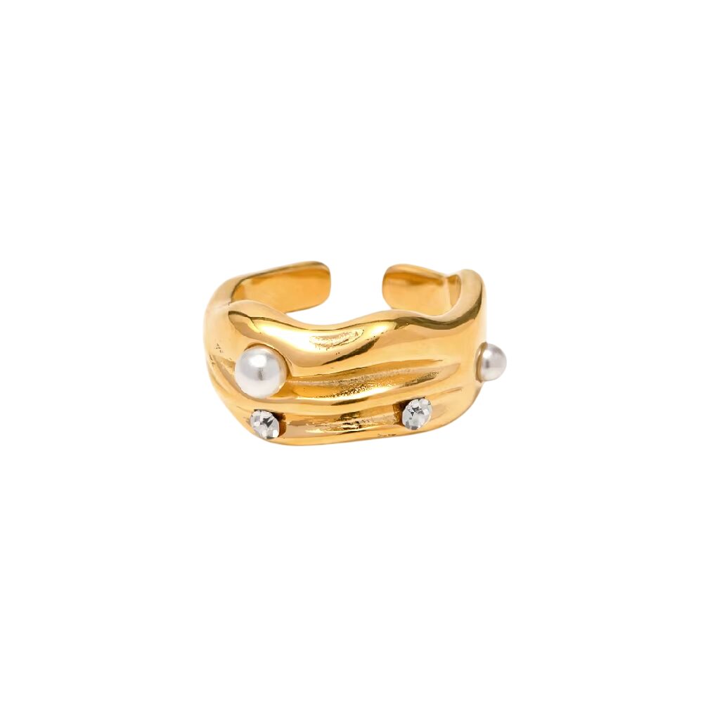 Soyez le premier à laisser votre avis sur “Anneau doré ajustable avec perle blanche et cristaux”