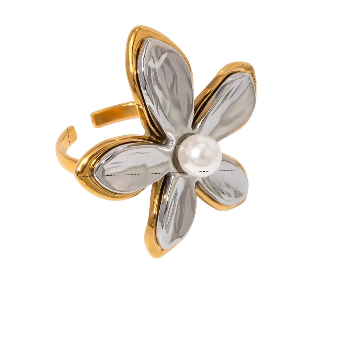 Bague fleur dorée et argentée avec perle blanche ajustable
