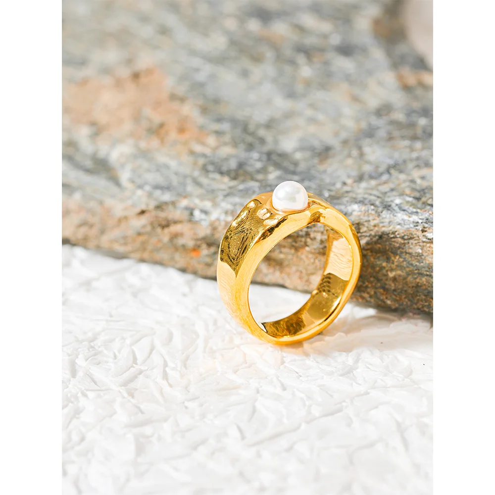 Bague plaqué or avec perle fantaisie