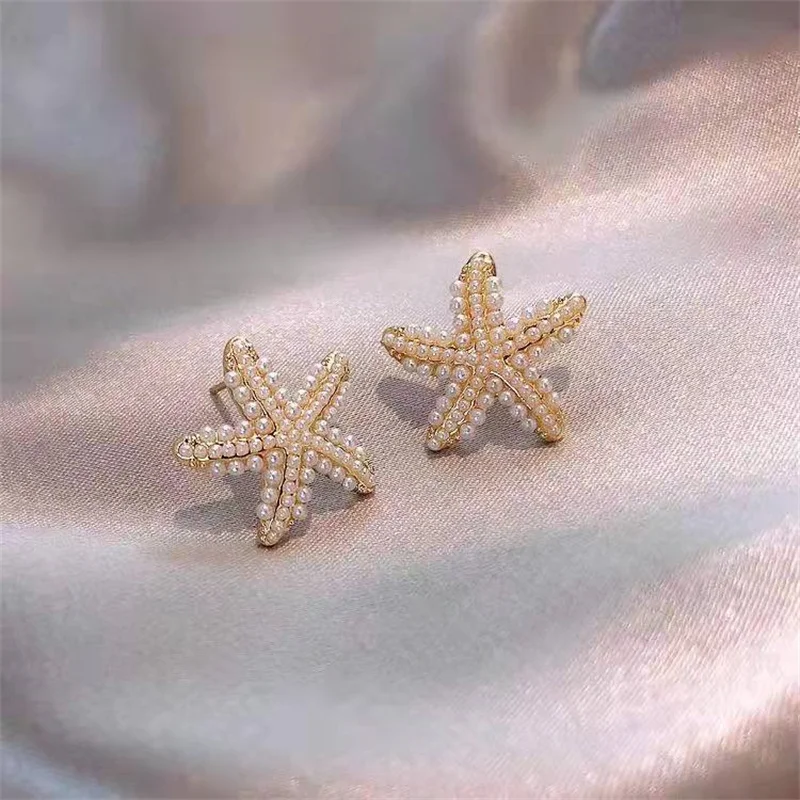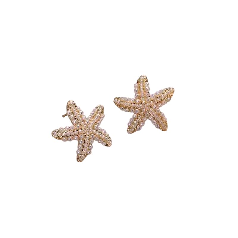Boucles d’oreilles dorées étoile de mer avec perles