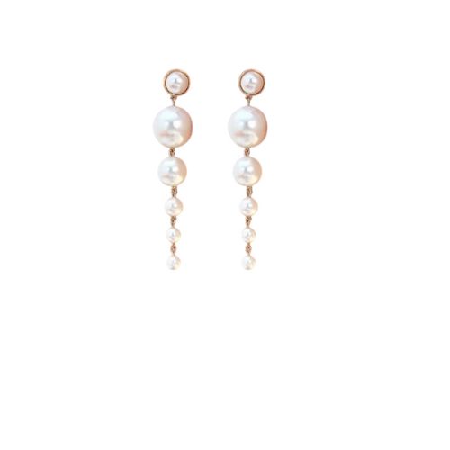 Boucles d’oreilles pendantes avec perles de différentes tailles blanches