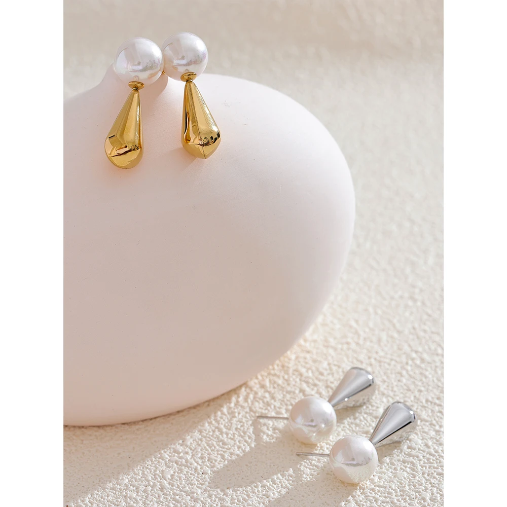 Boucles d’oreilles perles avec gouttes allongées dorées