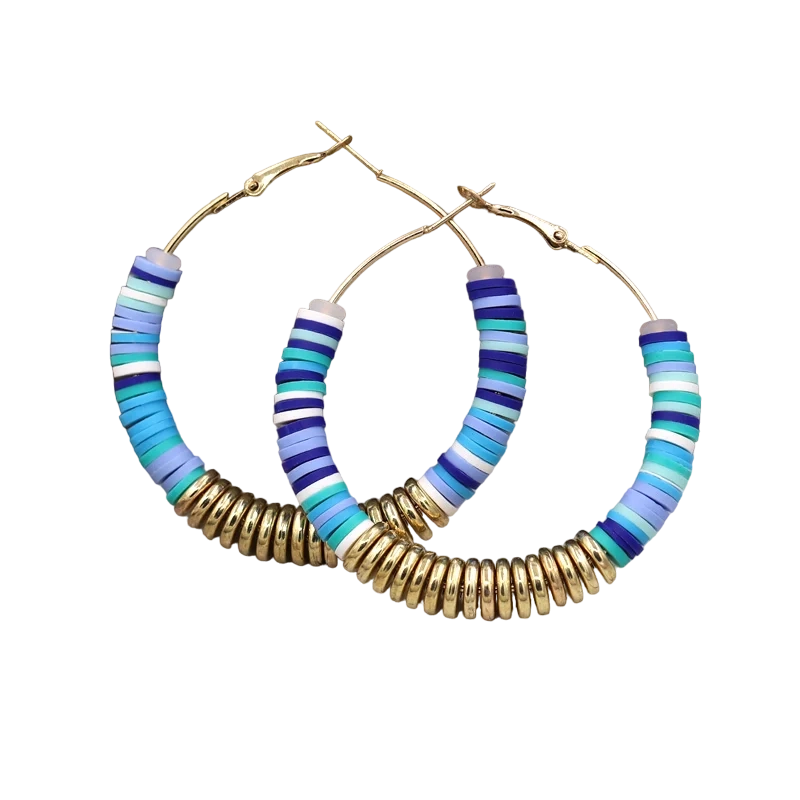 Boucles d’oreilles perle heishi bleu créoles