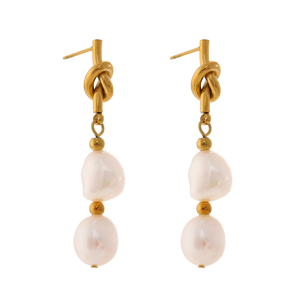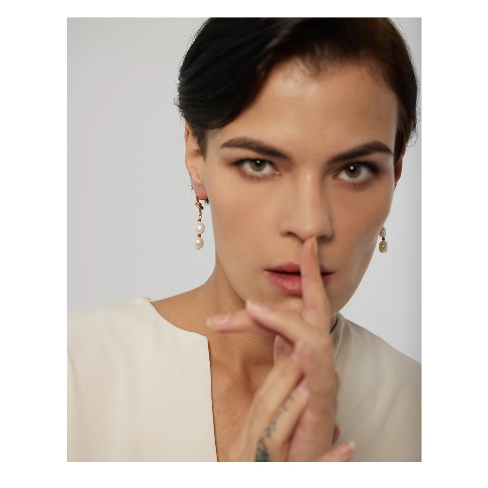 Boucles d’oreilles doubles perles pendantes d’eau douce