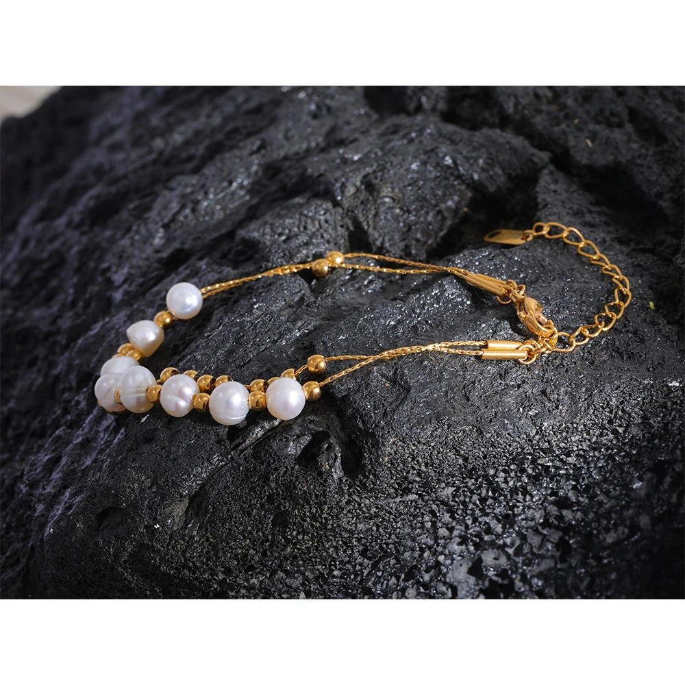 - Matériaux : Perles d’eau douce et acier inoxydable