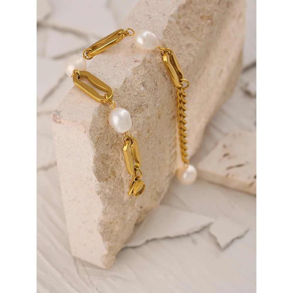 Bracelet de perle avec chaîne plaqué or (4 perles d’eau douce)