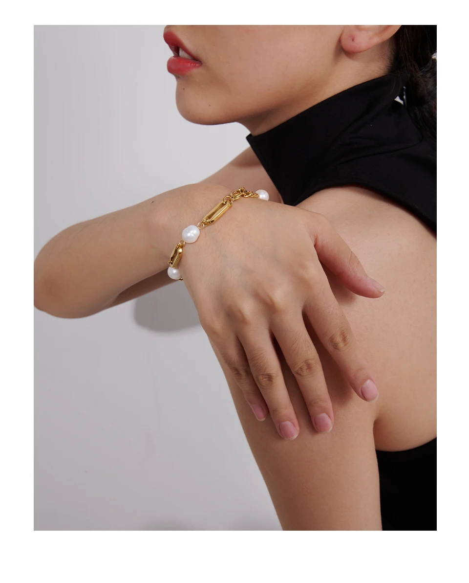 Conçu pour s’adapter à tous les poignets, ce bracelet perle et or est équipé d’un fermoir mousqueton sécurisé, garantissant un port confortable et sûr. Son design géométrique ajoute une note contemporaine à ce bijou classique. Offrez-vous ou offrez ce bracelet à quelqu’un de spécial pour ajouter une touche de glamour et de sophistication à sa collection de bijoux.