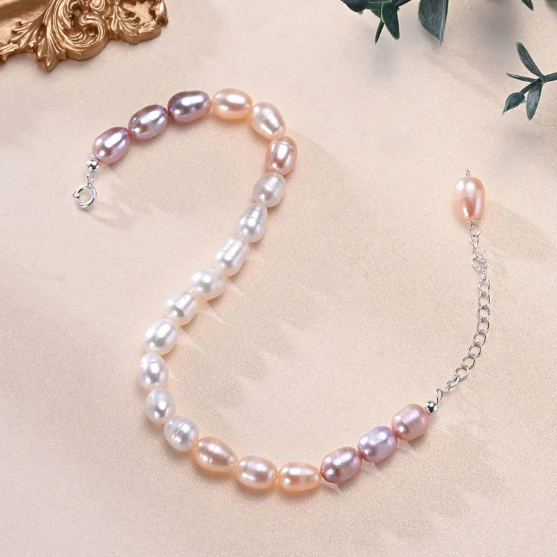Bracelet perles d’eau douce multicolores avec chaîne en argent