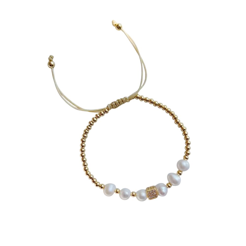 Bracelet perles multiples doré ajustable classique