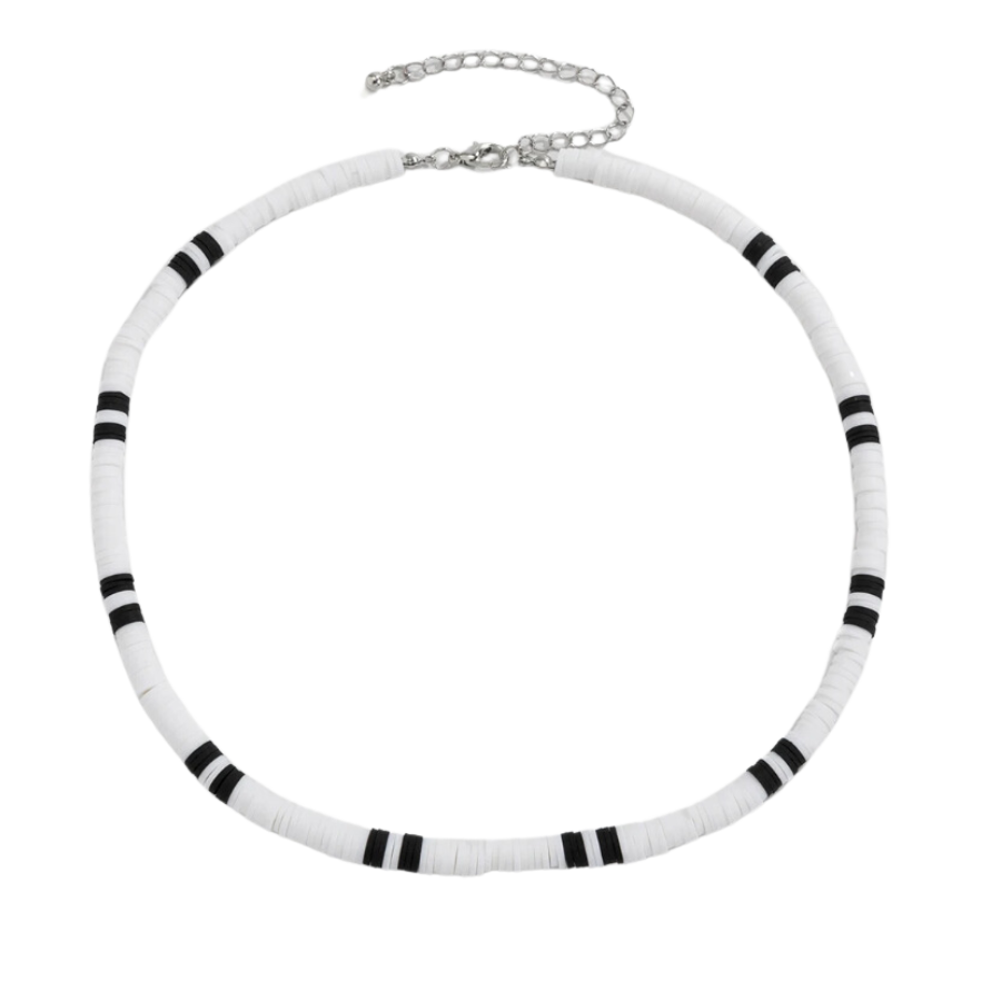 Adoptez un style audacieux et moderne avec le collier perle Heishi blanc et noir. Ce collier, fait main, allie élégance et originalité grâce à ses perles Heishi en argile de 4 mm, formant un motif bicolore chic et tendance. Parfait pour les hommes et les femmes, ce collier est idéal pour toutes les occasions, que ce soit un mariage, une fête ou une simple journée décontractée.