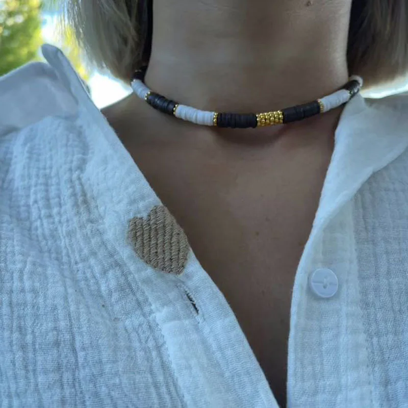 Soyez le premier à laisser votre avis sur “Collier perles Heishi ras de cou blanc et noir”
