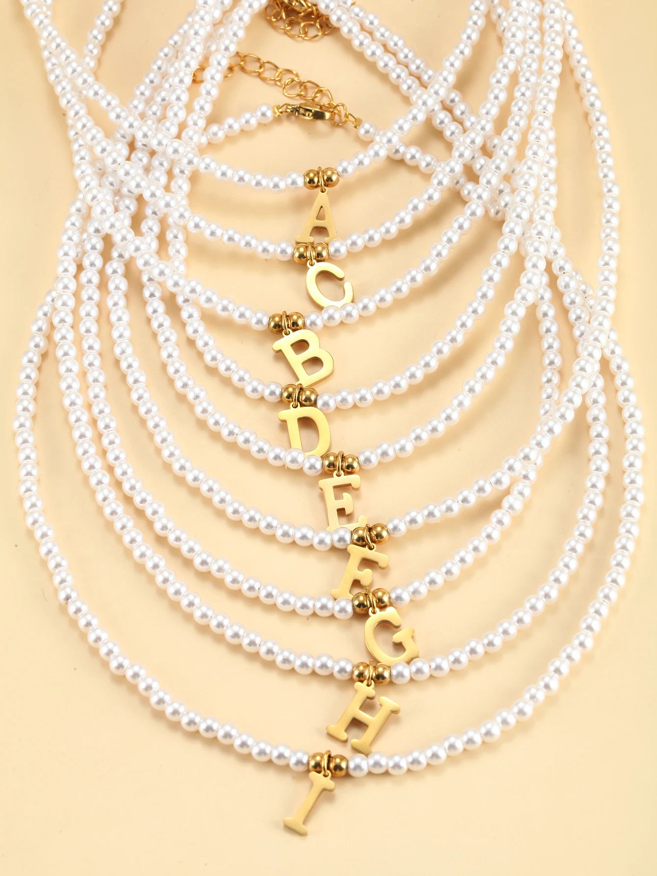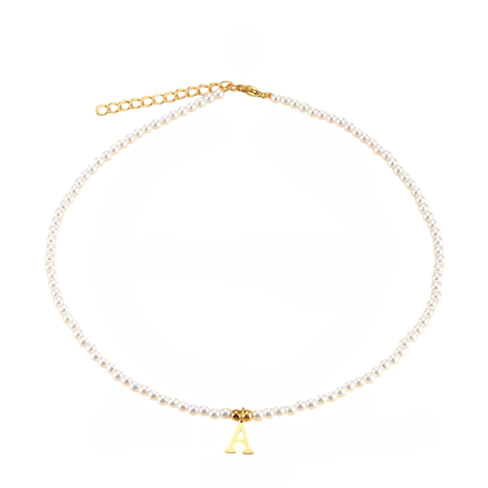Collier perles personnalisé doré avec lettre prénom